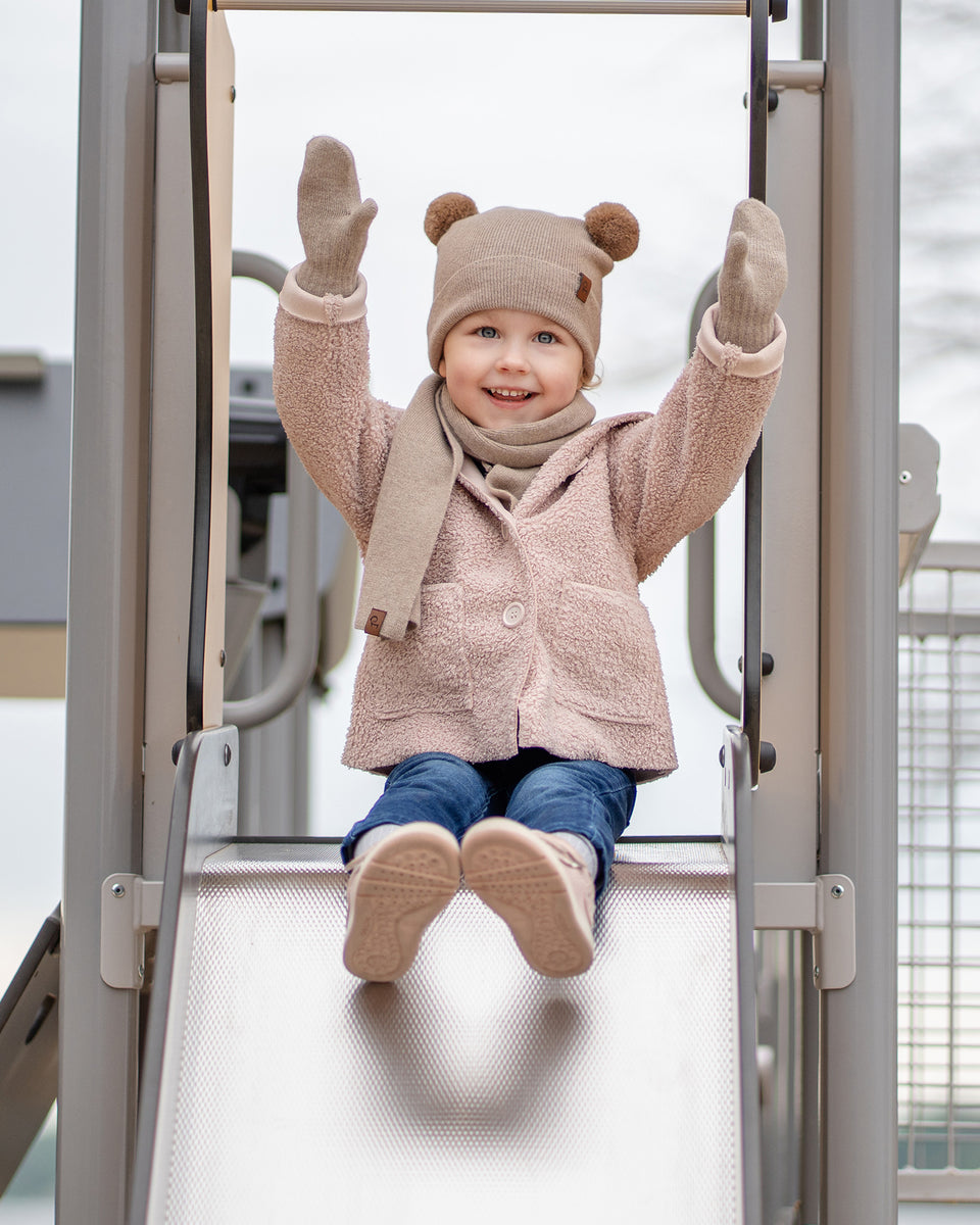 Fremstillet med omhu, vores børnevotter er lavet af en særlig blanding af merinould og kashmir. Disse bløde og milde fibre skaber en hyggelig fornemmelse på dit barns hænder. Når det gælder om at holde de små hænder varme, er vores unisex dobbelte votter virkelig i særklasse. Det to-lags design holder varmen inde og kulden ude. Disse unisex votter til børn, lavet af 100% økologiske materialer, vil være et perfekt tilbehør i mange år fremover. De er bløde, miljøvenlige og et godt valg til dit barn.
