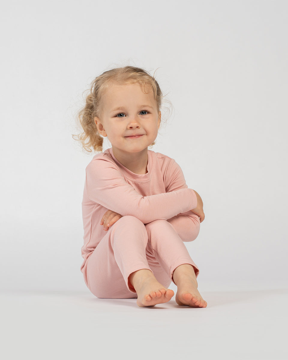 Gør overnatninger og langsomme weekendmorgener til noget, de rent faktisk glæder sig til med vores bambus langærmede top og matchende leggings-sæt. Silkeagtigt blødt og åndbart føles bambusstoffet som et hyggeligt kram, uanset om børnene læser, spiller eller falder i søvn. Den slanke, elastiske pasform lader dem krølle sig sammen, strække ud og bevæge sig let under pyjamasfester eller rolige studietimer. Naturligt hypoallergent, antibakterielt og lugtresistent holder vores bambuspyjamas nætterne friske. – Perfekt til aktive tweens og teenagere. Termoregulerende og let, bambussættet holder varmen på kølige nætter og er behageligt, når rummet bliver varmere. Holdbart og bæredygtigt lavet, bliver dette pyjamassæt det foretrukne afslapnings- og sovetøj, som børnene vil vælge igen og igen.