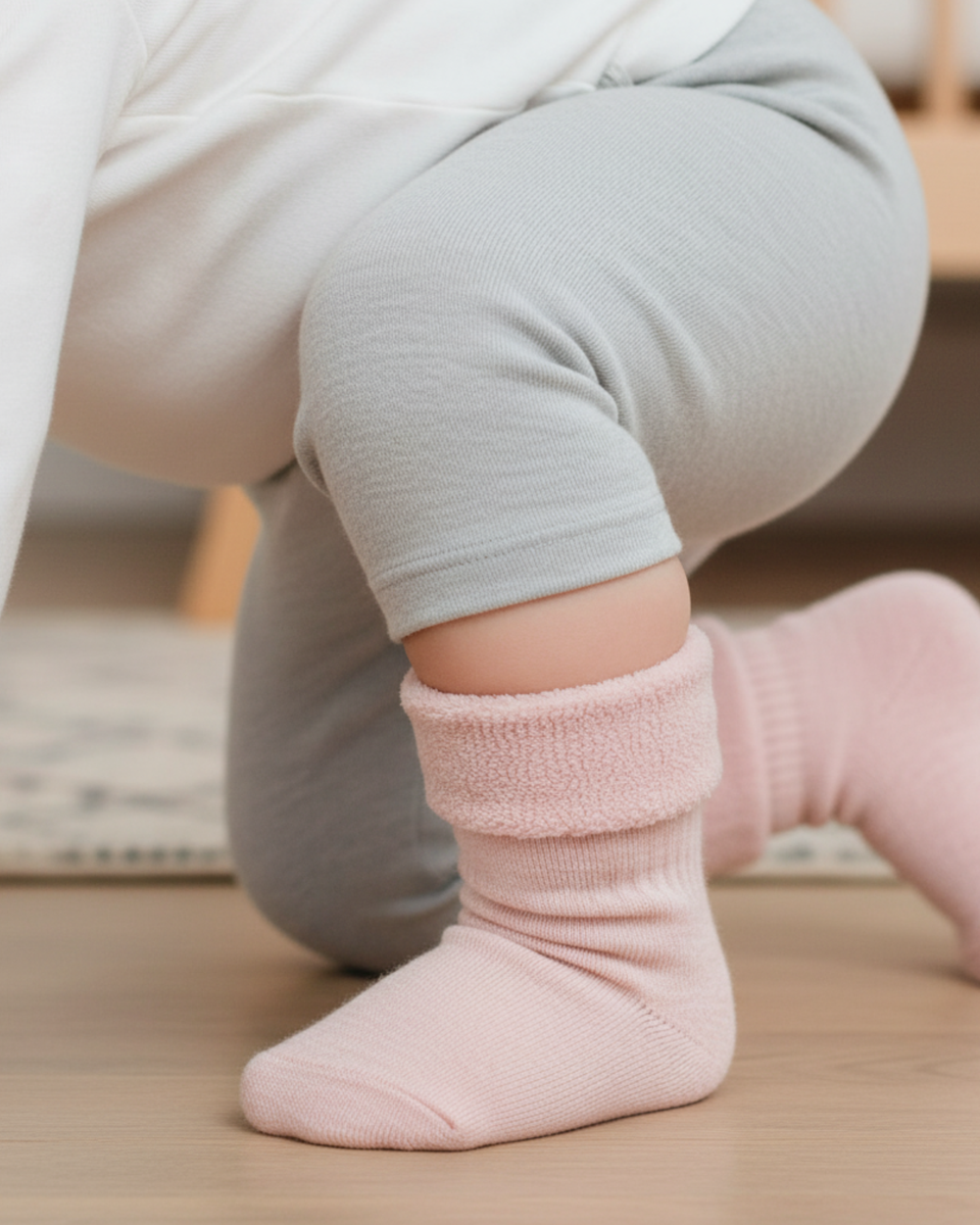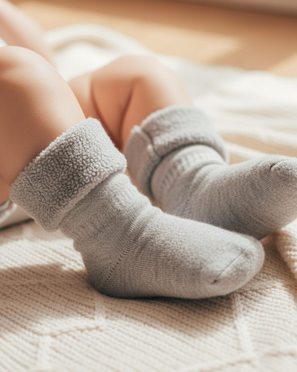 Giv din baby den sødeste start med vores 85% Merino sherpa-strømper, skabt til at holde hver lille tå indhyllet i varme og kærlighed. Som et blidt kram kærtegner det bløde fleecefor sart hud, mens Merinouldens naturligt krøllede fibre fanger varmen i bløde små luftlommer, der luner din baby uden at overophede. Hvert par hjælper din lille med at holde sig perfekt varm, tør og komfortabel, uanset årstiden. Naturligt åndbar, fugttransporterende og silkeagtig blød er Merinoulden mild nok til selv den mest følsomme hud. Bløde, beroligende og fulde af omsorg er disse uldstrømper lavet til livets hyggeligste øjeblikke.