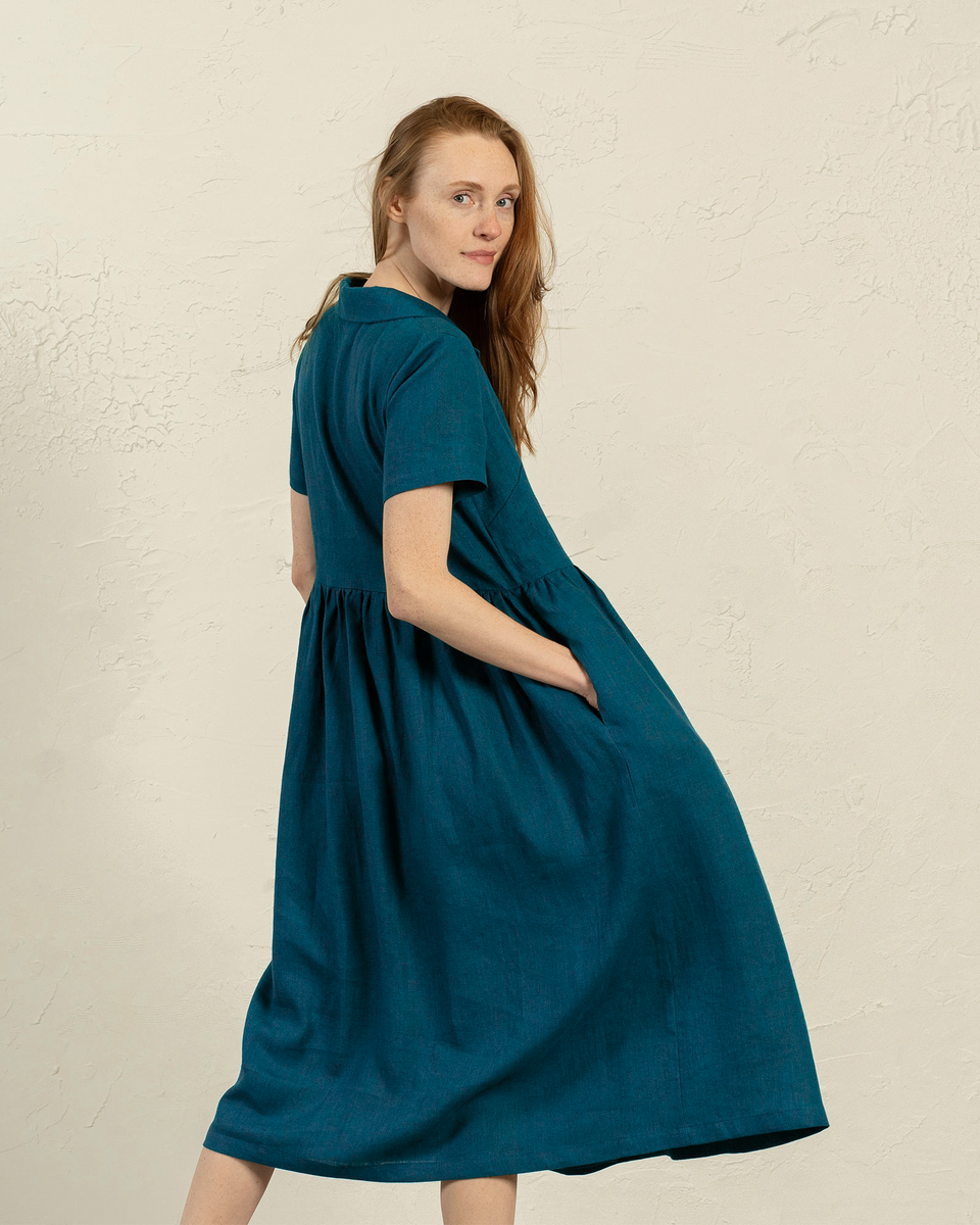Phoebe dress is true to size and has a relaxed fit. As you wear the garment throughout the day, it naturally softens and relaxes for enhanced comfort. Ideal for an hourglass, pear, apple, rectangle and inverted triangle body shapes.
