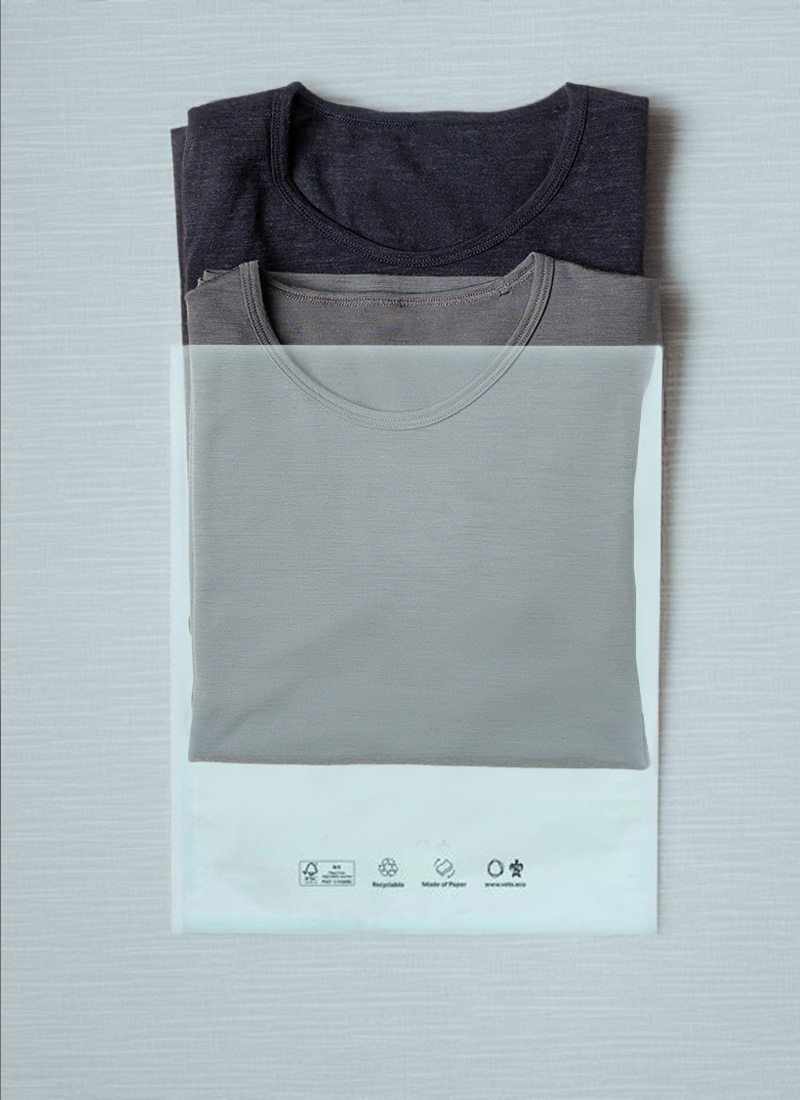 We use durable and FSC™ certified, paper-based Vela bags that are a sustainable alternative for plastic poly bags.