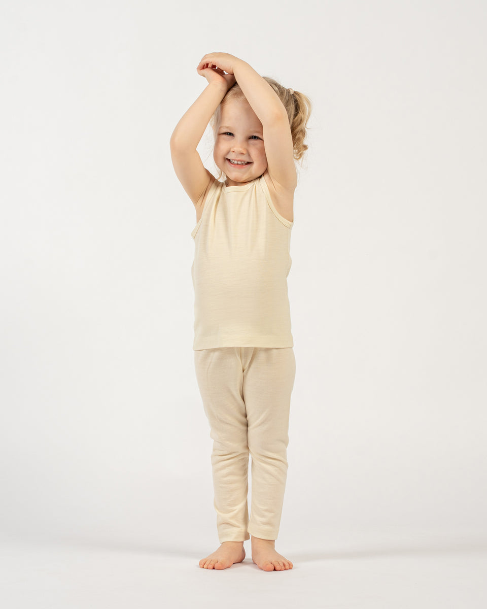 If you are looking for practical wear for your children, you have come to the right place. Cute and versatile leggings, made from organic Merino wool, will give your little boy or girl the best feeling of softness and comfort. 100% pure Merino wool pants are not only super smooth and stretchy, but also stain-resistant and very easy to care for, as a natural protective layer of the wool helps to prevent stains from being absorbed. With breathable and gentle Merino wool clothes your baby will always feel warm, dry, comfortable, and ready for all kinds of adventures. Pamper your toddler with the softest organic fabric for their best comfort.
