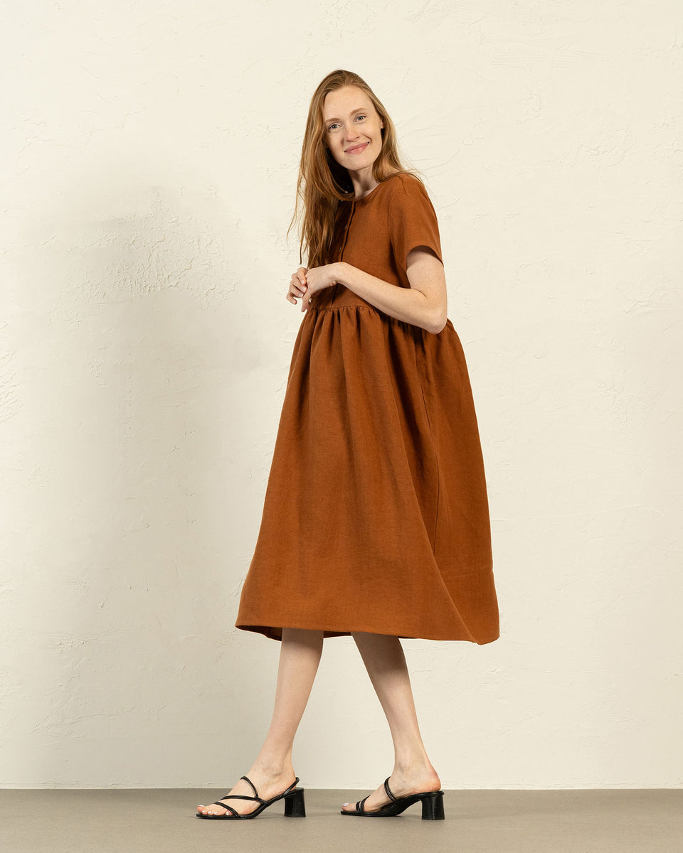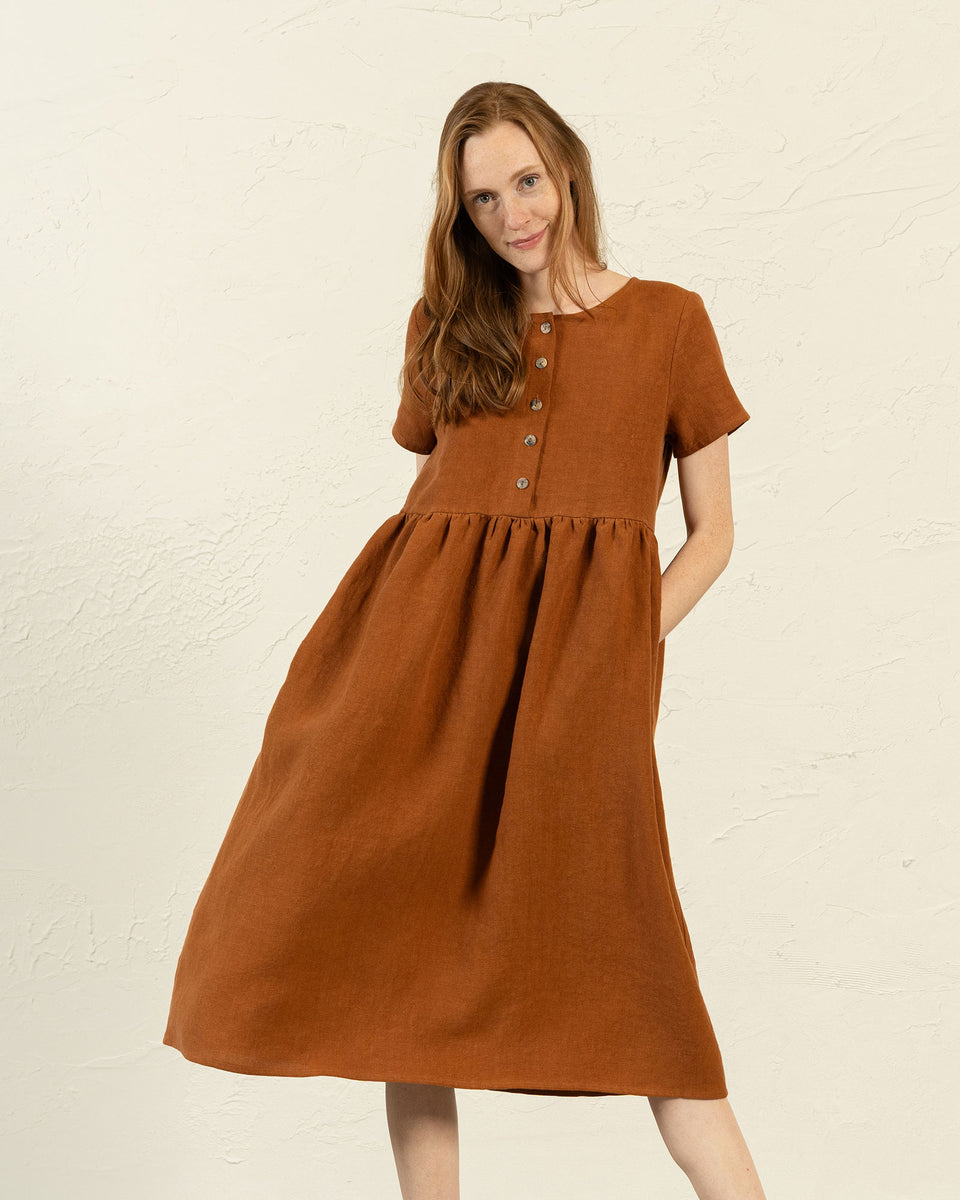 Introducing the Maria dress, a stylish and comfortable option made from soft, breathable 100% linen. Its empire silhouette provides a flattering fit for a variety of body types.