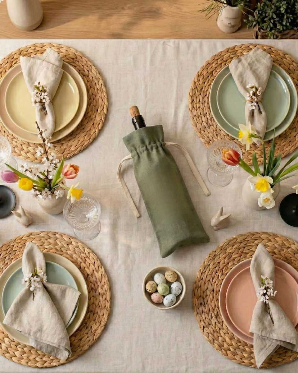 Our elegant 100% Linen wine bottle gift bag features a practical drawstring closure and adds an effortless festive touch. Available in natural, vibrant red, and sophisticated green, bottle bag is perfect for holiday gift-giving and seasonal gatherings. Durable, reusable, and eco-friendly just as thoughtful as the bottle inside. Ideal for dressing up host gifts, dinner parties, or corporate gifting year after year.